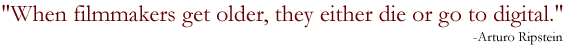 It is very significant that filmmakers like Arturo Ripstein are already shooting digitally. Eric Rohmer has his first digital feature in production right now. We premiered his first digital short at Cannes last year. The pace with which things are changing is breathtaking.