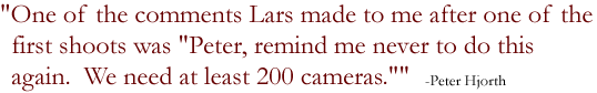 Hjorth: One of the comments Lars made to me after one of the first shoots was "Peter, remind me never to do this again. We need at least 200 cameras."