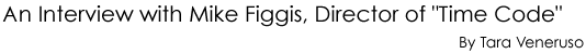 We have entered a new era of filmmaking. It has created the excitement that I read about in film theory classes wishing I could have been a part of such as the French New Wave, Italian neo-realism, or the German film noir. In March 2000, I felt that historical moment of a new filmmaking movement happening right before my eyes. Mike Figgis' Time Code has broken from traditional filmmaking and utilizes the tools that are shaking up the studio system.