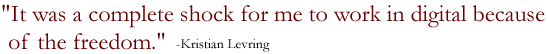 Levring: Yes, I really think it depends on what you are doing. I think if you are doing a really stylized film then film is still best. But if you're doing a character driven piece, I do feel digital would be better.
