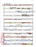 I wrote it like a score and so I could literally open it up into 6 pages and I copied that out. In fact when we started rehearsing I gave each member of the cast a whole bunch of music paper and explained the system to them. I said "now write it out yourself so you understand what I am doing." It was like a class where I was telling Selma and everyone, "go to Bar 23. There is a change there. Get your rubbers out. I want you to come in two bars earlier." They were looking at each other and asking to borrow each other's colored pencils. It was a trip.